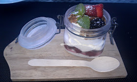 Грильяж из овсяных хлопьев со сливками, творогом и сезонными ягодами (10/10)(3,50) - очень красивая подача, хорошая порция, нежный десерт, еще бы взяла такой!
